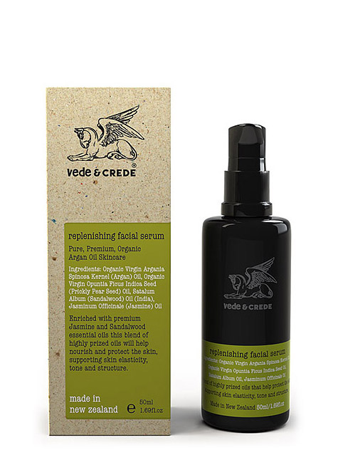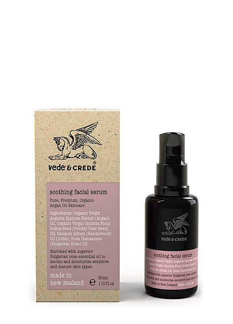 Available so you can sample all four Vede & Crede Organic Skincare products. Includes soothing facial serum, nourishing facial serum, replenishing facial serum and facial cleansing tonic.